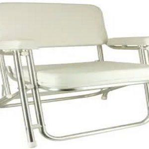 The chair uses high-density foam padding for optimal comfort and resilience. It is encased in mildew-resistant vinyl that meets marine-use standards—water-repellent, easy to clean, and resistant to bacteria and mold.