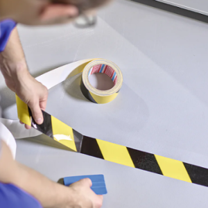 The protective PET top layer improves the tape’s resistance to scratches, dirt, abrasion and chemicals and ensures a long service life, with a permanent bright colour that does not wear off over time. Thanks to the synthetic rubber adhesive, the anti-scratch floor tape adheres well to various smooth surfaces.